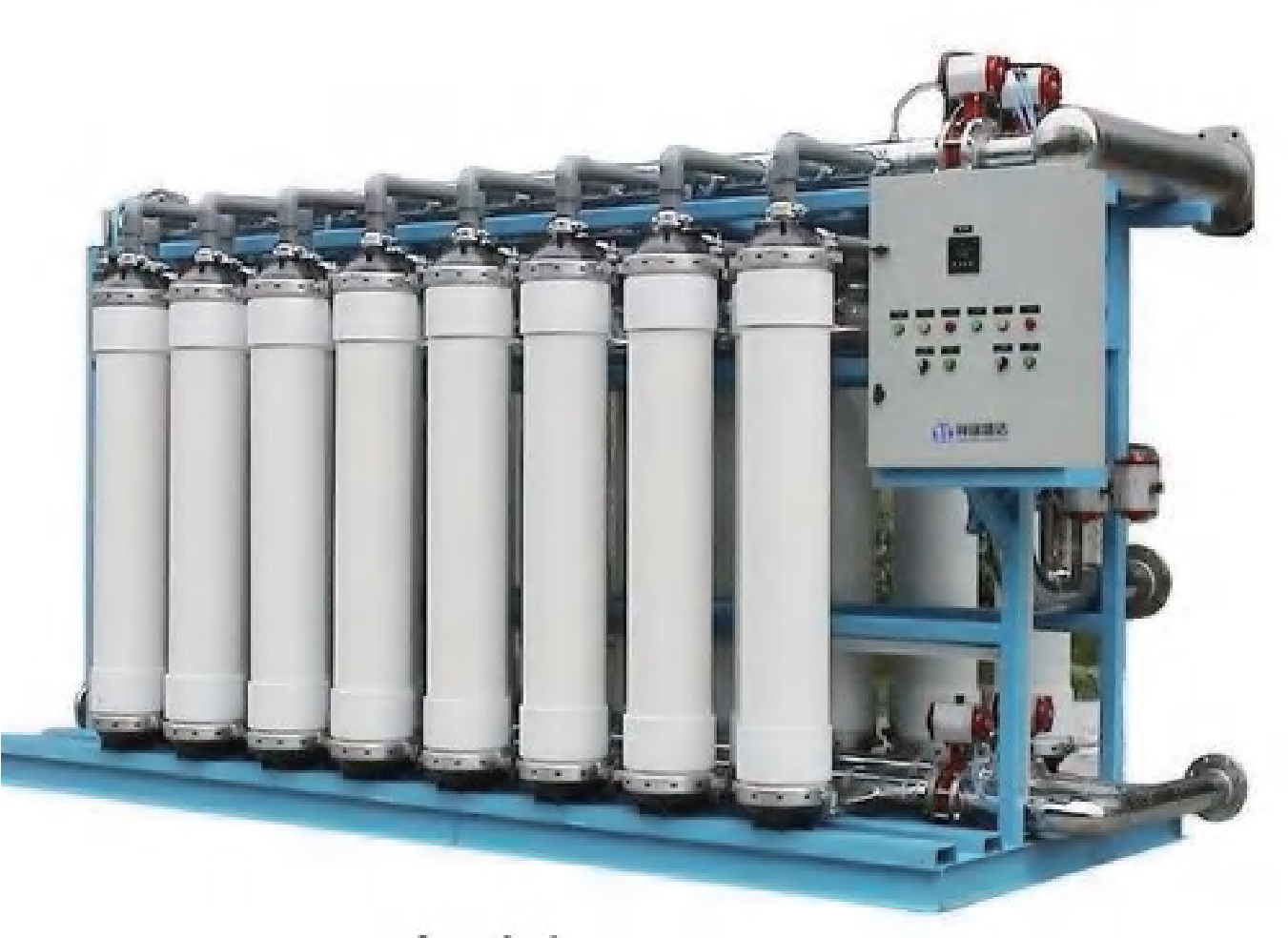 采用加壓膜分離技術,利用超濾膜的篩分作用,截留水中膠體、顆粒、大分子有機物及微生物,水和小分子溶質透過膜體。設備過濾高效,操作簡單,無需添加藥劑,維護方便且節(jié)能環(huán)保,運行成本低,出水水質穩(wěn)定,可作為反滲透設備的預處理環(huán)節(jié),也可直接用于中水回用(如綠化、沖洗),適用于市政、工業(yè)、飲用水處理等場景。